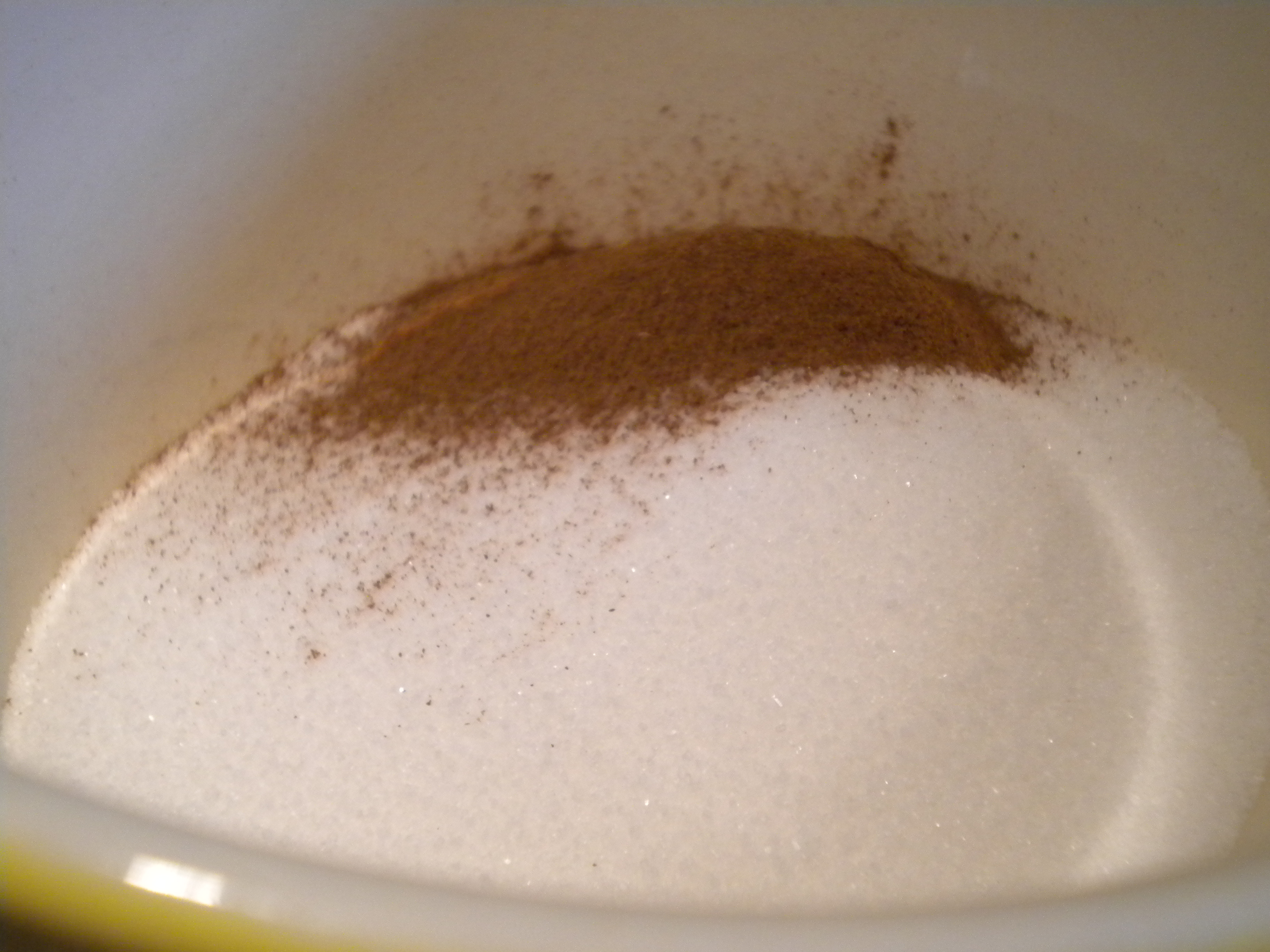 In a large bowl, melt ½ cup butter. Set aside. In another bowl, mix together sugar and cinnamon.