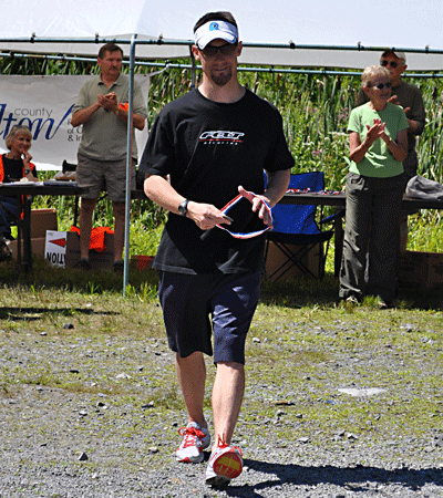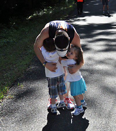 It was incredibly special that Tyler and Abbey were able to see their Dad compete: they were so excited! Even Laura and Greg got into it – Laura volunteered as a timer, and Greg sat at the edge of his driveway ringing his cow bell for each and every triathlete that ran by their house!