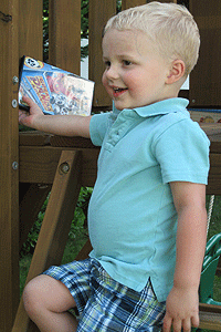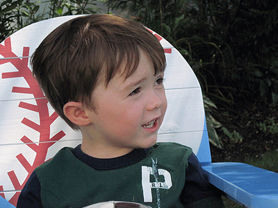 We did Tommy first. My nephew barely ever sits still and once he realizes you have a camera in your hand, he starts yelling, "C-H-E-E-E-E-S-E!", and you can kiss your picture goodbye! Tommy gave us all of three minutes before he ran away…