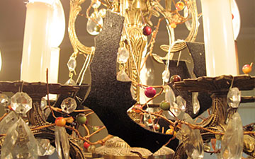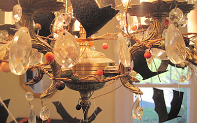I love decorating for Halloween. I couldn’t help but notice that after I put all of the decorations up, my chandelier looked very left out. I found some fall colored berry garland to spiff it up, but it was still missing something.