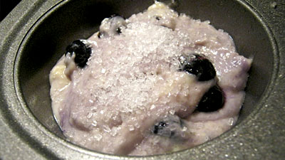 Flour your blueberries so they don't sink to the bottom of your muffin. (I used Dole frozen blueberries for my muffins).