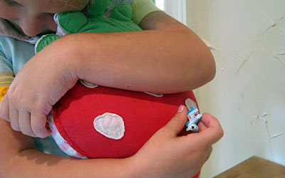 The last time it came out of the wash I held the dress and thought about the endless summer days of her running around in her favorite strawberry dress. It is now covered in paint, ice cream and grass stains. Except for the strawberry. The strawberry that made it her very favorite dress, is still perfect. I realized I could make the strawberry into a pillow and then she really could keep it forever!